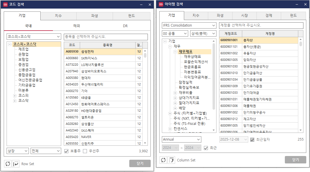 종목과 데이터 아이템을 빠르게 찾고 싶다면
