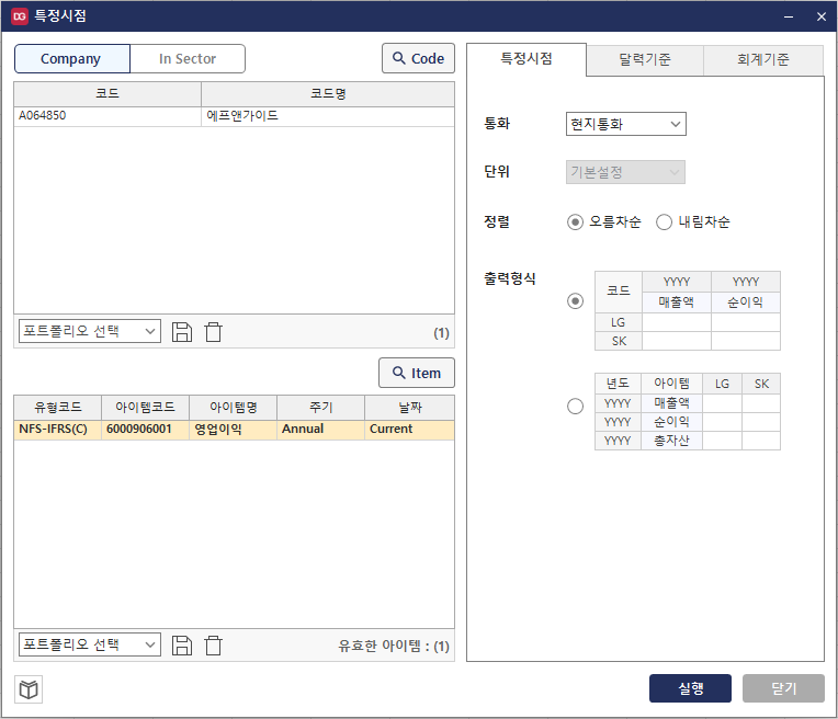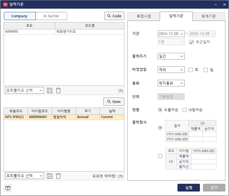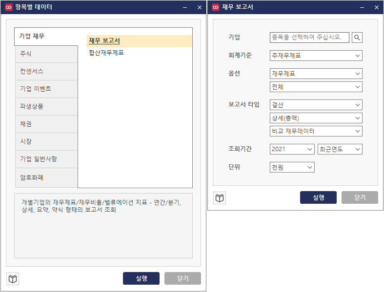 기업/시장의 데이터 출력하기 (리포트 메뉴)